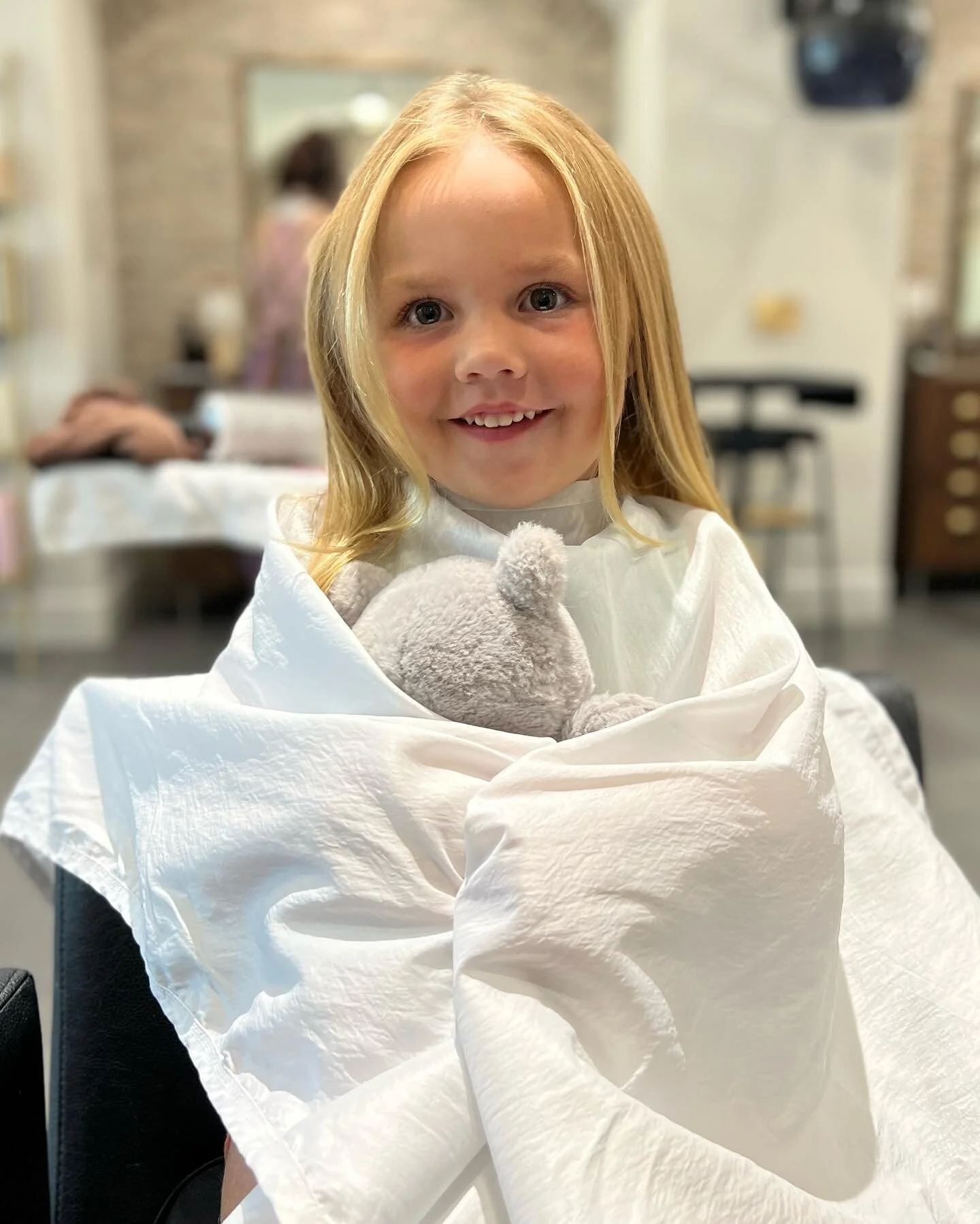 View fullsize Emma’s first haircut! With very little prep we walked right into the salon, sat her in the chair and from the first bit of shampoo, she was all smiles, ear to ear, the whole time. She left excited, pampered and stylin! #hairbylauren @bylauren28